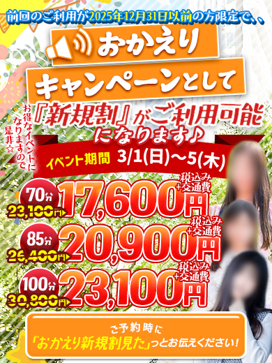 ※出勤一番のご予約以外、ご希望の時間より大幅にずれる事も御座いますのでご了承下さいませ。